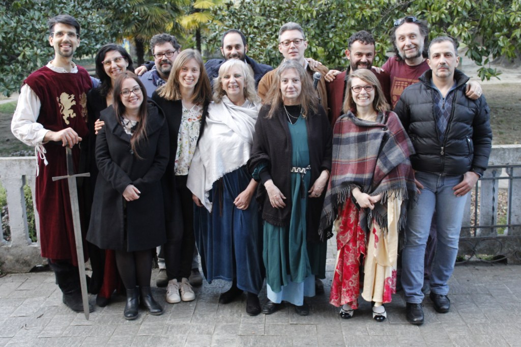 La domenica mattina si è svolta l’interessantissima tavola rotonda dal titolo “Le Fondamenta del Fantastico – Viaggio nella letteratura e Folklore del Medioevo”: Carla Iacono Isidoro, antropologa e studiosa degli aspetti storico-antropologici dell’opera di Tolkien, ci ha parlato del Green Man ovvero l’Uomo Selvatico, dal punto di vista antropologico e folklorico (anche se i due personaggi non sono proprio la stessa cosa, secondo Luisa), figura che Tolkien conosceva bene avendo curato l’edizione di Gawain e il Cavaliere Verde, e che si può ritrovare in Barbalbero, ma anche in Tom Bombadil. Ferruccio Cortesi, archeologo e antropologo, è risalito indietro nel tempo per rintracciare i Berserkr, i guerrieri-orso, di cui Beorn è un perfetto esemplare. Errico Borro, archeologo e coautore del gioco di ruolo Il tempo della spada ha trattato il tema della magia, così come si è strutturata nel corso dei secoli fino al Rinascimento; Alessandro Astolfi, laureato in linguistica e filologia, ci ha parlato delle radici etnolinguistiche dell’opera tolkieniana e della figura del drago (facendo tra l’altro un interessante excursus sulle lingue italiane perché non solo il toscano ebbe una notevole produzione letteraria). La conclusione è stata lasciata a Annarita Guarnieri, notissima traduttrice di narrativa fantasy, che ci ha detto come questa si sia modificata negli ultimi tempi e ha poi sviluppato alcune suggestioni tratte dagli interventi precedenti.