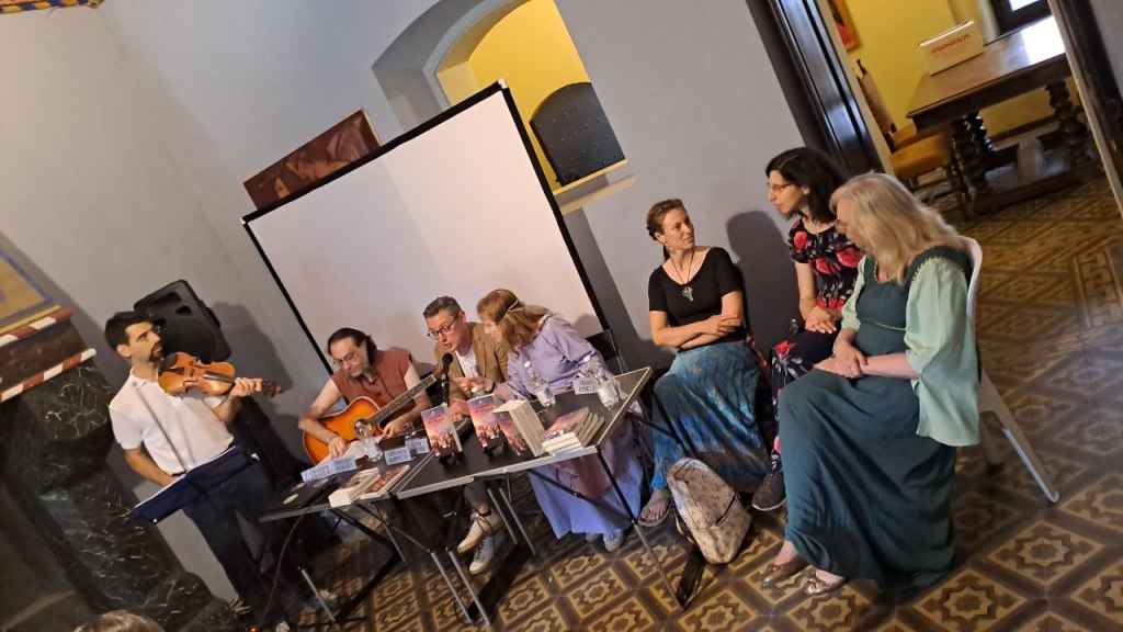 L’incontro ha visto sia la presentazione di saggi ispirati all’universo e alla poetica tolkieniana, come quello dedicato a Tolkien e Dante di Ivano Sassanelli, quello sull’influenza della mitologia e della letteratura classica di Arianna Parissi e quello sulla guerra nella Terra di Mezzo di Marco Rubboli, sia un bilancio dell’importanza dell’opera tolkieniana sull’immaginario. A questo riguardo Armando Corridore, editore e saggista, ha parlato dell’importanza del sublime nella letteratura e in particolare nel fantastico, e di quanto questo sia sempre più assente nella narrativa attuale . La vostra qui presente Chiara poi ha cercato di rispondere alla domanda: “perché Tolkien possa essere considerato un classico” e per quale motivo la sua opera abbia avuto e continui ad avere così tanto successo. Alessandro Bizzarri, infine, ha presentato la sua trilogia fantasy ispirata al Signore degli Anelli e a D&D.