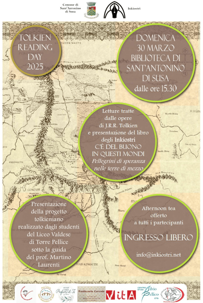 Mentre proseguono le presentazioni del romanzo “I Sentieri del Nizhar”, stiamo alacremente lavorando per il Tolkien Reading Day (TRD di qui in poi. Cosa è il TRD?) che proporremo con un evento pubblico il prossimo 25 marzo negli eleganti locali di Villa Prever, sede del museo di Scienze Naturali della città di Pinerolo e nell’adiacente parco storico.